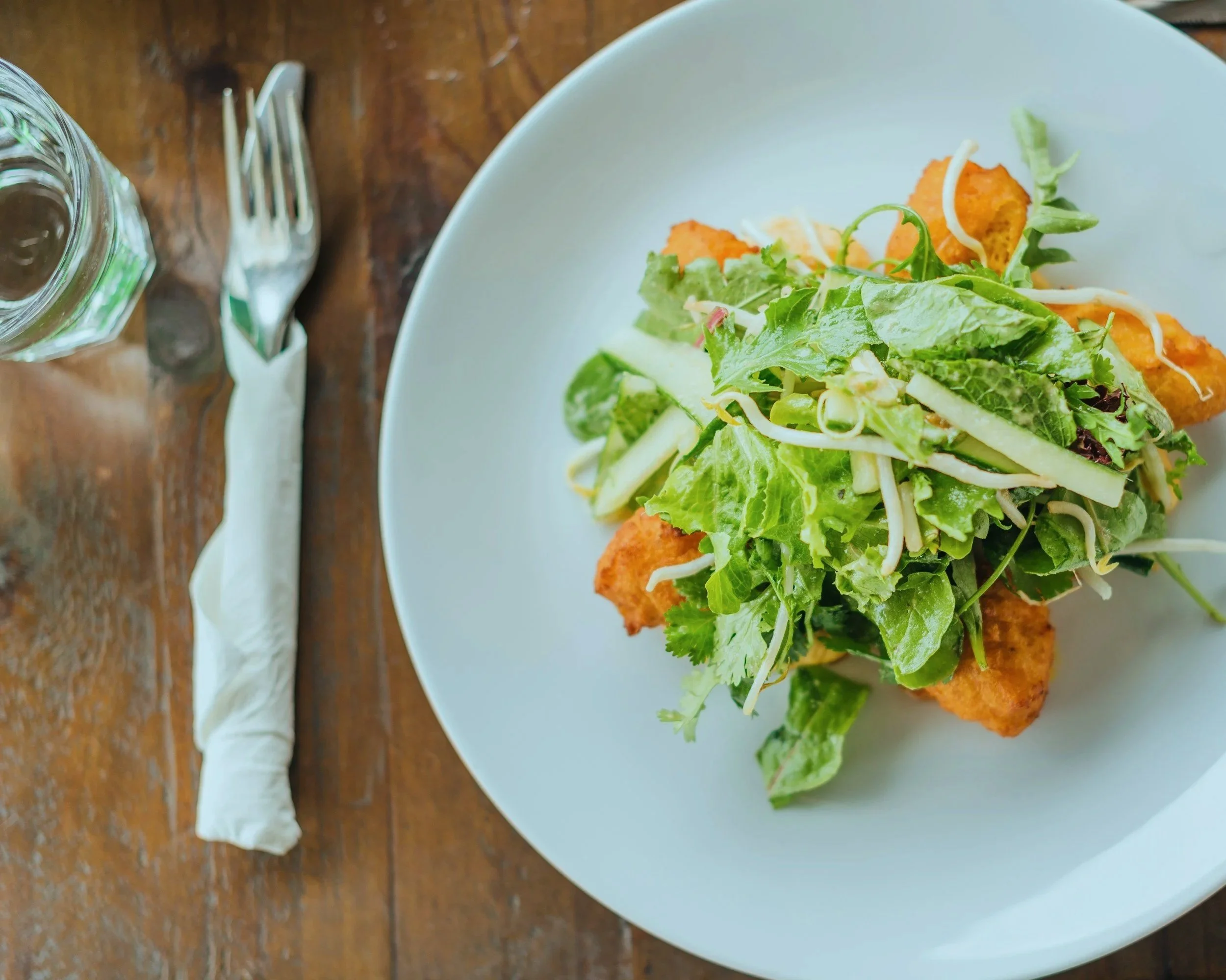 Arugula, Iceberg, Fresh Vegetables, Soy Roasted Almonds, Ponzu Vinaigrette